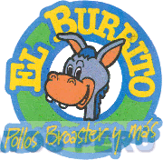 La denominación EL BURRITO escrita en letras características dentro de una figura circular, en cuyo centro se aprecia la representación caricaturizada de un burro sonriente, y en la parte interior de éste se aprecia la frase POLLOS BROASTER Y MÁS escrita en letras características, todo en los colores amarillo, azulino, verde, gris, azul y anaranjado; conforme al modelo adjunto