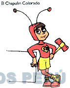 La denominación EL CHAPULÍN COLORADO escrita en letras características seguida de la figura de un personaje vestido con malla enteriza y capucha roja con un corazón amarillo en el pecho con la inicial CH y pantalón corto amarillo encima, lleva un martillo de colores rojo y amarillo y en la cabeza lleva antenas con círculos pequeños de color rojo; conforme al modelo adjunto