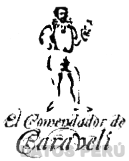 El logotipo conformado por la denominación EL COMENDADOR DE CARAVELI escrita en letras características y la figura estilizada de un personaje sosteniendo una copa en la mano; sin reivindicar colores; conforme al modelo adjunto