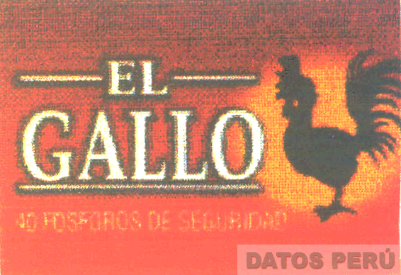 LA ETIQUETA RECTANGULAR EN DOS TONALIDADES DE COLOR ROJO Y AMARILLO QUE CONTIENE DOS FRANJAS DENTRO DE LA CUAL APARECE LA DENOMINACION EL GALLO ESCRITA EN LETRAS CARACTERISTICAS TODO EN COLOR BLANCO CON BORDES DE COLOR NEGRO, DEBAJO APARECE LA FRASE 40 FOSFOROS DE SEGURIDAD, EN LA PARTE DERECHA APARECE LA FIGURA ESTILIZADA DE UN SOL SOBRE LA CUAL SE APRECIA LA FIGURA DE UN GALLO EN COLOR NEGRO; CONFORME AL MODELO ADJUNTO