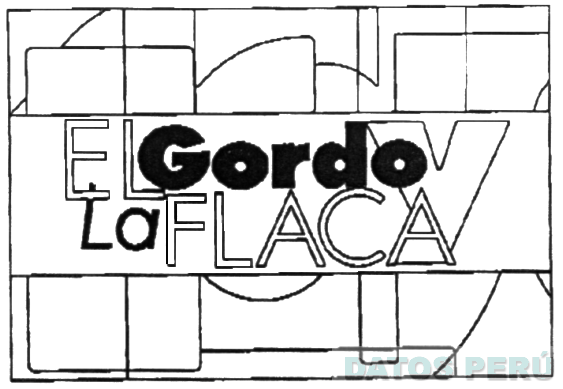 LA DENOMINACION EL GORDO Y LA FLACA ESCRITA EN MOLDES CARACTERISTICOS SOBRE UNA FIGURA RECTANGULAR TENIENDO COMO FONDO DISTINTAS FIGURAS GEOMETRICAS, CONFORME AL MODELO ADJUNTO