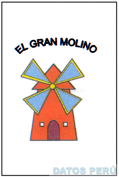 EL LOGOTIPO CONFORMADO POR LA DENOMINACION EL GRAN MOLINO ESCRITA EN LETRAS CARACTERISTICAS, DEBAJO DE ESTA LA FIGURA ESTILIZADA DE UN MOLINO FORMADO POR DIVERSAS FIGURAS GEOMETRICAS TALES COMO UN TRAPECIO, UN TRIANGULO ISOSCELES, UNA HELICE DE CUATRO ASPAS, DOS CUADRADOS A MANERA DE VENTANAS Y UNA FIGURA IRREGULAR COMO PUERTO TODO EN LA COMBINACION DE COLORES NEGRO, ROJO, CELESTE, AMARILLO Y BLANCO; CONFORME AL MODELO ADJUNTO