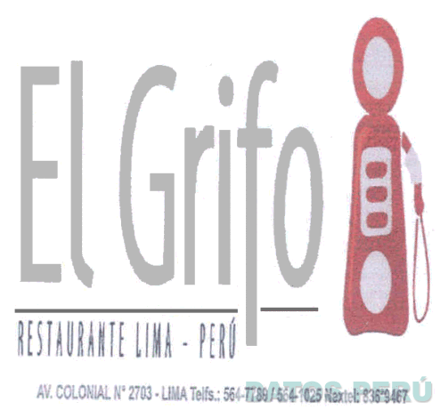 El logotipo conformado por la denominación EL GRIFO escrita en letras características y subrayada, acompañada de la representación estilizada de un surtidor y diversas frases alusivas al producto, todo en colores gris y guinda; conforme al modelo adjunto