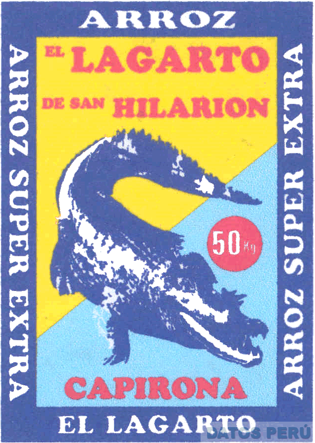 La denominación EL LAGARTO DE SAN HILARION escrita en letras características, en la parte central la figura de un lagarto, en las partes laterales la denominación ARROZ SUPER EXTRA escrita en letras características en ambos lados, y demás leyendas alusivas al producto, en los colores rojo, amarillo, celeste, azul y blanco; conforme al modelo adjunto