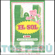 El diseño estilizado de una bolsa y un oso y la denominación EL SOL escrita en letras características en colores blanco, rosado, verde, amarillo y rojo; conforme al modelo adjunto