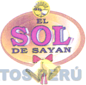 LA DENOMINACION EL SOL DE SAYAN DENTRO DE UNA FIGURA ELIPTICA TRUNCADA POR LA FIGURA DE UN SOL NACIENTE,UN CERRO Y UNA ESPIGA DE TRIGO EN SU PARTE SUPERIOR,Y EN LA PARTE INFERIOR LA FIGURA DE DOS CAMPANAS CON UN LAZO, TODO EN LA COMBINACION DE COLORES