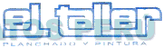 El logotipo conformado por la denominación EL TALLER escrita en letras características y la frase PLANCHADO Y PINTURA escrita en letras características; todo en los colores azul y blanco; conforme al modelo adjunto