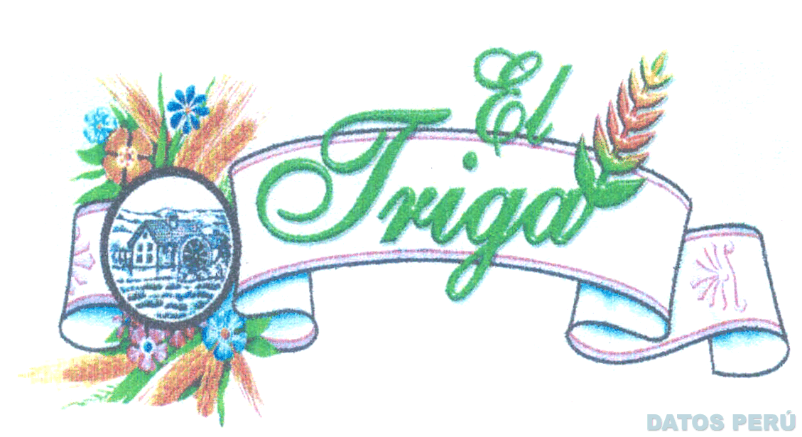 El logotipo conformado por la denominación EL TRIGAL escrita en letras características cuya última letra L está representada por una espiga; en el extremo izquierdo, se aprecia una figura circular que contiene una casa y un molino de agua, asimismo, se observan diversas flores y espigas; todo ello, sobre una cinta ondulante; en la combinación de colores azul, verde, fucsia, amarillo, anaranjado, rojo, celeste, blanco y negro; conforme al modelo adjunto