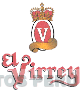 EL LOGOTIPO ESTA CONSTITUIDO POR UNA CORONA DORADA VIRREINAL SOBRE UN CIRCULO OVALADO DE COLOR ROJO CON BORDES BLANCO Y NEGRO EN EL CENTRO DEL CIRCULO FIGURA LA LETRA V, UNA FRANJA DORADA RODEA LA PARTE INFERIOR DEL CIRCULO OVALADO, TAMBIEN ESTA LA DENOMINACIÓN EL VIRREY ESCRITA CON LETRAS ESTILIZADAS DE COLOR ROJO CON SOMBRA NEGRA
