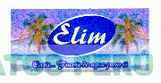 El logotipo conformado por la denominación ELIM escrita en letras características sobre una figura ovoidal estilizada y la frase FUENTE DE AGUA PARA TI escrita en letras características, todo sobre el fondo de un paisaje con dos palmeras, arena, mar y cielo; en los colores celeste en diversas tonalidades, azul, negro, blanco y verde en diversas tonalidades; conforme al modelo adjunto