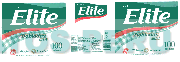 La envoltura rectangular en la cual se aprecia la denominación ELITE escrita en letras características de color blanco, en la parte superior izquierda la denominación SERVILLETAS escrita en letras características en color blanco, sobre un fondo de color verde (Pantone 342C), en el borde inferior tres franjas ondulantes y paralelas, una de color dorado (Pantone 871C), otra de color rojo (Pantone 485 2xC) y otra conformada por pequeños cuadrados de color verde y blanco, sobre esta última la denominación DOBLADAS EN 4 escrita en número y letras características en color verde (Pantone 342C) con bordes blanco y dorado (Pantone 871C), y la frase 100 UNIDADES escrita en números y letras características en color verde (Pantone 342C); en la parte inferior de la envoltura la expresión MAXIMA SUAVIDAD escrita en letras características y un círculo que contiene figuras geométricas en los colores dorado, blanco y verde; y una figura con la denominación PERU escrita en letras características de color rojo y blanco; todo lo cual se repite en la envoltura, sin reivindicar el fondo; conforme al modelo adjunto