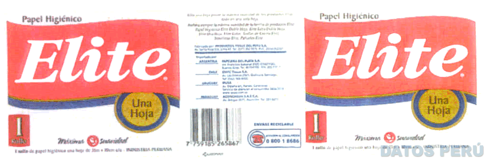 LA ENVOLTURA CONTENIENDO LA DENOMINACION ELITE ESCRITA EN LETRAS CARACTERISTICAS, UNA LINEA ONDULADA Y UNA FIGURA CIRCULAR CONTENIENDO LA FRASE UNA HOJA ESCRITA EN LETRAS CARACTERISTICAS, Y DEMAS LEYENDAS ALUSIVAS AL PRODUCTO, TODO EN LOS COLORES BLANCO, ROJO (PANTONE 193 C), AZUL (PANTONE 281 C) Y DORADO (PANTONE 871 C), SIN REIVINDICAR EL COLOR DEL FONDO; CONFORME AL MODELO ADJUNTO