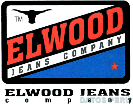 EL LOGOTIPO CONFORMADO POR LA FIGURA RECTANGULAR CON LOS BORDES REDONDEADOS QUE EN SU INTERIOR LLEVA LA DENOMINACION ELWOOD JEANS COMPANY ESCRITA EN LETRAS CARACTERISTICAS Y EN EL EXTREMO SUPERIOR IZQUIERDO LA FIGURA ESTILIZADA DE LA CABEZA DE UN TORO, Y EN EL EXTREMO INFERIOR DERECHO LA FIGURA ESTILIZADA DE UNA ESTRELLA; ASIMISMO, DEBAJO DEL LOGOTIPO SE APRECIA LA DENOMINACION ELWOOD JEANS COMPANY ESCRITA EN LETRAS CARACTERISTICAS, TODO EN LOS COLORES ROJO, NEGRO, BLANCO Y AZUL; CONFORME AL MODELO ADJUNTO