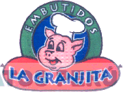 El logotipo conformado por la denominación EMBUTIDOS LA GRANJITA escrita en letras características; en la parte central se aprecia la representación caricaturizada de la cara de un cerdo con gorro de chef contenido en una figura circular y; en la parte inferior, se aprecia la silueta estilizada de un embutido, todo en los colores anaranjado, verde, azul, rosado, rojo, negro y blanco; conforme al modelo adjunto
