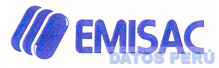 El logotipo conformado por la denominación EMISAC escrita en letras características y en el extremo izquierdo se aprecia una figura irregular, todo en color azul; conforme al modelo adjunto