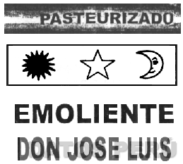 LA DENOMINACION EMOLIENTE DON JOSE LUIS ESCRITA EN LETRAS MAYUSCULAS, EN LA PARTE SUPERIOR LA PALABRA PASTEURIZADO, EN LA PARTE CENTRAL UN RECTANGULO CONTENIENDO LA FIGURA DE UN SOL, UNA ESTRELLA Y LA LUNA; CONFORME AL MODELO ADJUNTO,