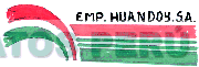 La denominación EMPRESA HUANDOY S.A. escrita en letras características y figuras de franjas rectas y curvas en los colores rojo, blanco y verde; conforme al modelo adjunto.