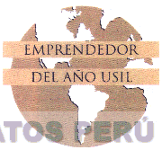 El logotipo conformado por la denominación EMPRENDEDOR DEL AÑO USIL escrita en letras características al interior de dos rectángulos paralelos y sobre la representación estilizada de un globo terráqueo, todo en la combinación de colores dorado, blanco y negro; conforme al modelo adjunto