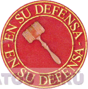 El logotipo conformado por la denominación EN SU DEFENSA escrita en letras características y por duplicado alrededor de una figura circular, en el centro un pequeño círculo que contiene la figura de un martillo en forma diagonal; todo en los colores amarillo, rojo ocre y marrón; conforme al modelo adjunto