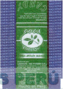 La envoltura conformada por tres franjas verticales, conteniendo la denominación, de manera repetida, ENERGIZER en la franja izquierda y DIGESTIVE en la franja derecha, en la franja central se aprecia la denominación COCA CANDY escrita en letras características rodeando una figura ovoide que contiene una planta de coca con cinco hojas, en la parte inferior se aprecia una franja horizontal con la frase HELPS ALTITUDE SICKNESS, más abajo frases alusivas al producto, más arriba aparecen dos líneas paralelas y una atravesando la figura ovoide; todo en colores verde, blanco y azul; conforme al modelo adjunto