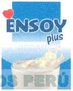 La denominación ENSOY PLUS escrita en letras características; sobre la cual se aprecia la figura de un corazón; y en la parte inferior la representación de un vaso de leche; en los colores azul, celeste, rojo y blanco; conforme al modelo adjunto