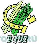 El logotipo conformado por la figura de una herradura y en su interior se aprecia la figura de varios espárragos; debajo la denominación EQUZ escrita en letras características; todo en los colores amarillo, verde claro, verde oscuro, negro y blanco; conforme al modelo adjunto