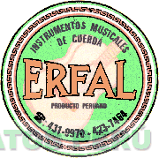 Una etiqueta circular con bordes de motivos incaicos, conteniendo la denominación ERFAL escrita en letras características, en el fondo la representación de la silueta de una guitarra, y demás leyendas alusivas al producto, todo en la combinación de colores verde, anaranjado, negro y blanco; conforme al modelo adjunto