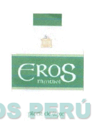La etiqueta conformada por tres rectángulos; siendo los de los extremos de color blanco, el rectángulo central de color verde con franjas finas a los extremos de color verde claro, la denominación EROS escrita en letras características en color blanco, el diseño estilizado de una pérgola con columnas de color dorado; conforme al modelo adjunto