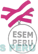El logotipo conformado por la denominación ESEM PERU escrita en letras características la cual está dentro de una figura circular en cuya parte superior se aprecian dos franjas irregulares que se encuentran entre cruzadas; todo en la combinación de colores rojo, blanco y gris; conforme al modelo adjunto
