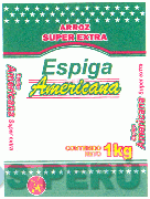 La denominación ESPIGA escrita en letras características en color verde, debajo la denominación AMERICANA escrita en letras características en color amarillo entre cuatro líneas paralelas rojas, todo dentro de una franja de color blanco en cuyos lados se aprecia la denominación ESPIGA AMERICANA SUPER EXTRA (sin reivindicar los términos SUPER EXTRA) escrita en letras características en posición vertical de color rojo; en la parte superior una franja de color verde donde se aprecian estrellas de color blanco y la denominación ARROZ SUPER EXTRA (sin reivindicar) escrita en letras características de color rojo; y en la parte inferior una hilera de estrellas de color blanco en posición horizontal y debajo la letra M estilizada dentro de un círculo en color rojo y amarillo, sobre fondo de color verde; conforme al modelo adjunto