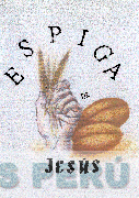 La etiqueta con la ESPIGA DE JESUS escrita en letras características, en cuya parte central se aprecia una mano sujetando espigas junto a la figura de dos panes; en colores amarillo, marrón, verde y azul; conforme al modelo adjunto