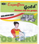 La denominación ESPONJITAS GOLD ARRAZA CON LA GRASA DURA MUCHO MÁS!! y logotipo (se reivindica colores), conforme al modelo