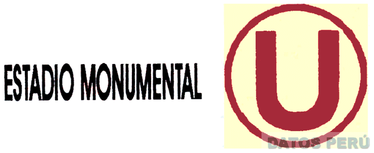 La denominación ESTADIO MONUMENTAL escrita en letras características y el diseño de la letra U dentro de un círculo, en los colores guinda y fondo crema; conforme al modelo adjunto