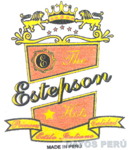EL LOGOTIPO CONFORMADO POR LA DENOMINACION ESTEPSON Y LA FIGURA DE UN ESCUDO CARACTERISTICO EN DONDE SE APRECIA UNA CORONA Y DOS LEONES, CINCO ESTRELLAS, UNA FIGURA IRREGULAR CONTENIENDO LA LETRA E ESTILIZADA, EN LA PARTE INFERIOR UNA CINTA ONDEADA DONDE SE APRECIA LA FRASE PRIMERA CALIDAD ESTILO ITALIANO; TODO EN LA COMBINACION DE LOS COLORES AMARILLO, ROJO Y NEGRO; CONFORME AL MODELO ADJUNTO