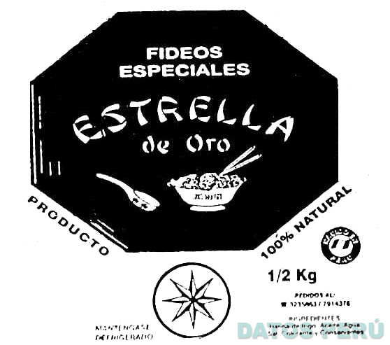 La denominación FIDEOS ESPECIALES ESTRELLA DE ORO escrita en letras características y la figura estilizada de una cuchara y un tazón, todo dentro de una figura hexagonal; en la parte inferior la figura de una estrella dentro de un círculo y demás frases alusivas al producto; conforme al modelo adjunto