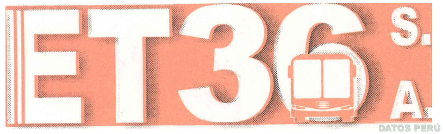 El logotipo conformado por una figura rectangular que contiene la denominación ET36 S.A. escrita en letras características, y la figura estilizada de una silueta frontal de un vehículo; todo en la combinación de colores anaranjado, blanco y plomo; conforme al modelo adjunto.