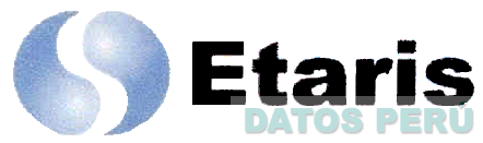 La denominación ETARIS escrita en letras características y en el lado izquierdo la figura de dos semicírculos invertidos de color azul; conforme al modelo adjunto