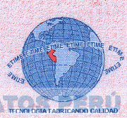 La representación estilizada de un mapa mundi, apreciándose alrededor, la denominación ETIME escrita en letras características y repetida ocho veces; en la parte inferior la frase TECNOLOGIA FABRICANDO CALIDAD escrita en letras características, todo en los colores azul, celeste, rojo, rosado, blanco y negro; conforme al modelo adjunto