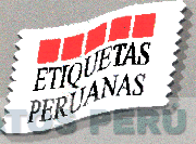 La figura de cinco cuadrados en color rojo, uno a continuación del otro, debajo aparece la denominación ETIQUETAS PERUANAS escrita en letras características; conforme al modelo adjunto
