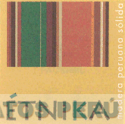 El logotipo conformado por la denominación ÉTNIKA escrita en letras características y la figura de un rectángulo dividido en franjas de diferentes grosores, todo en la combinación de colores verde, amarillo, anaranjado, blanco y distintas tonalidades de marrón; conforme al modelo adjunto