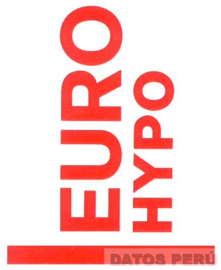 LA DENOMINACION EUROHYPO ESCRITA EN LETRAS CARACTERISTICAS, UBICADAS VERTICALMENTE SOBRE UNA FRANJA HORIZONTAL, TODO EN COLOR ROJO (PANTONE 180); CONFORME AL MODELO ADJUNTO