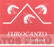 El logotipo conformado por el diseño estilizado de tres cabezas de dragón en color blanco, separadas por líneas diagonales blancas en forma triangular y la denominación EUROCANTO EDGEBAND escrita en letras características, según diseño con una franja de color blanco en la parte inferior; todo en fondo de color rojo; conforme al modelo adjunto