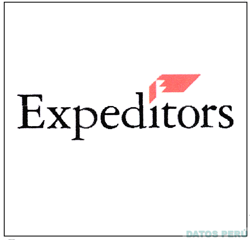 El logotipo conformado por la denominación EXPEDITORS escrita en letras características y una figura característica en la parte superior; en los colores negro y rojo; conforme al modelo adjunto