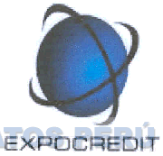 El logotipo conformado por la denominación EXPOCREDIT escrita en letras características y la representación de un círculo con dos anillos entrelazados, todo en los colores negro y azul en distintas tonalidades; conforme al modelo adjunto