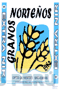El logotipo conformado por la denominación GRANOS NORTEÑOS escrita en letras características y la frase EXTRA NIR escrita en letras características apreciada en las franjas laterales, en la parte central la figura de dos espigas de arroz, y en la parte inferior frases alusivas al producto, todo en la combinación de colores celeste, amarillo, negro y blanco; conforme al modelo adjunto