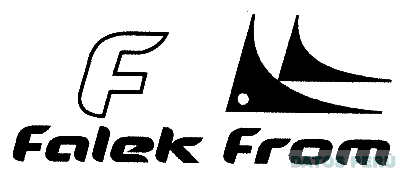 El logotipo conformado por la letra F y en el margen derecho la conjunción de dos figuras irregulares que asemejan un pez, en la parte inferior la denominación FALEK FROM escrita en letras características; en los colores blanco y negro; conforme al modelo adjunto