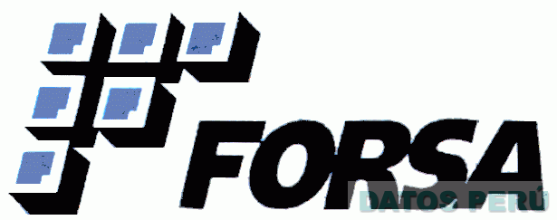 El logotipo conformado por la denominación FORSA escrita en letras características y dispuesta en forma diagonal, al lado izquierdo se aprecian la representación estilizada de seis cubos que en su conjunto forman la letra F, también en diagonal; conforme al modelo adjunto