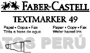 La denominación FABER-CASTELL TEXTMARKER 49 escrita en letras características con la silueta de dos caballeros medievales enfrentados y la representación de un marcador estilizado y el texto PAPEL COPIA FAX TINTA A BASE DE AGUA en castellano e inglés; conforme al modelo adjunto
