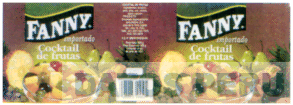 LA ETIQUETA RECTANGULAR DE FONDO MARRON EN CUYA SECCION IZQUIERDA APARECEN LAS DENOMINACIONES FANNY Y COCKTAIL DE FRUTAS, EN LOS COLORES, AMARILLO, NEGRO, BLANCO, VERDE Y ROJO, DICHA CONFIGURACION SE ENCUENTRA EXACTAMENTE DUPLICADA AL LADO DERECHO DE LA ETIQUETA, SEGUN FACSIMIL ADJUNTO,