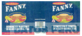 LA ETIQUETA DE FONDO AZUL Y DENOMINACION FANNY, DOS PLATOS CON TORTA DE PESCADO Y RODAJAS DE TOMATE Y LECHUGA, DIVISA EN LOS COLORES BLANCO, AMARILLO, VERDE, BEIGE Y FRANJA ROJA, SEGUN MODELO ADJUNTO,